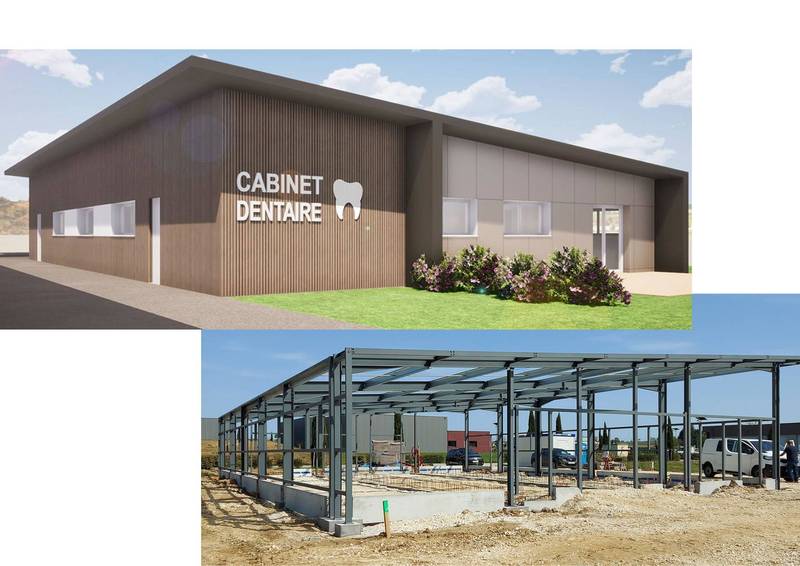 La Société Civile Immobilière BBQ - société spécialisée dans la location de terrain et d'autres biens immobiliers a lancé la réalisation d'un nouveau projet près de Bordeaux.La SCI a fait appel et confiance à Travaux Aquitains, spécialiste depuis plus de 40 ans dans la conception, réalisation et livraison clé en main de bâtiment à structure métallique, afin de réaliser le gros œuvre et la charpente métallique d'un tout nouveau cabinet dentaire sur la commune de Sauveterre de Guyenne.La charpente métallique a été posé au mois d'avril et les travaux se poursuivent !!!
